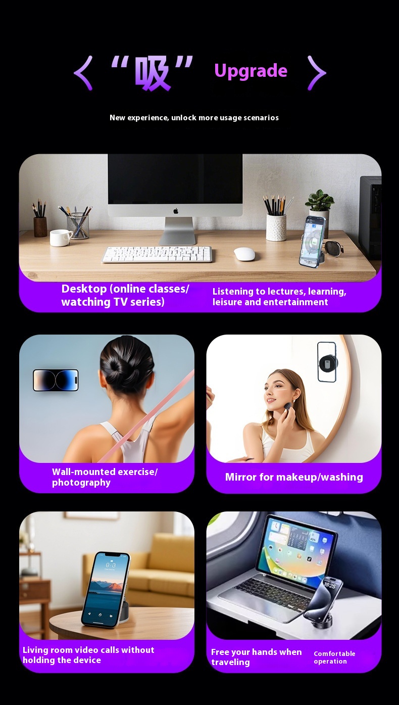 No more juggling your phone while scrolling, shooting TikToks, or driving! This Vacuum Adsorption Phone Holder sticks firmly to any smooth surface and keeps your phone safe, steady, and hands-free.